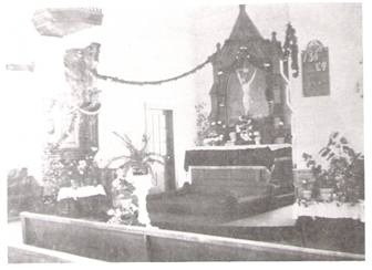 During the time of its existence, several houses of worship were built by the congregation. The first one was a small log structure, at the location of the present parsonage. The second church was notable in this, that the pulpit, the altar, the pews, in fact, all the fixtures, were made of black walnut.
