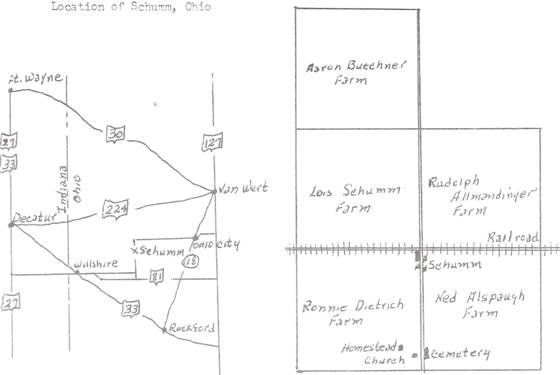 wolves away.. John George Schumm died in 1846 in this log hut. The second log hut, which was built soon afterwards, had two rooms on the first floor and two on the second floor which were used as bedrooms. Two doors from this log cabin are still in use in the present homestead, which was built in 1858 by George M. Schumm, and is still standing, which speaks well for the good timber and conscientious work that entered into the construction of the house. And another building which is still standing is the large barn of the homestead.